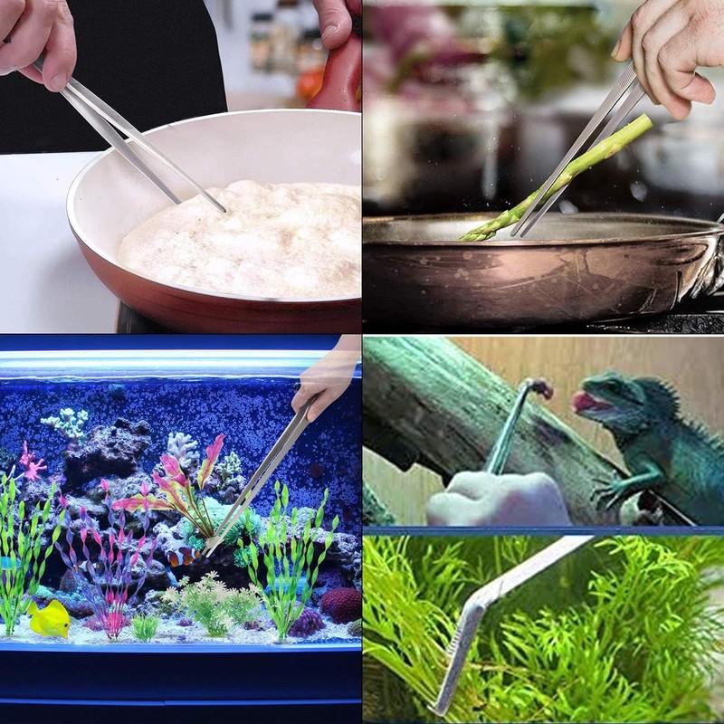 - Wide applications: At the end of the tweezers set there is a fine clip, which is very suitable for work that needs to keep distance, such as aquarium landscape, aquarium cleaning, cooking, feeding reptiles, fish or laboratory work.