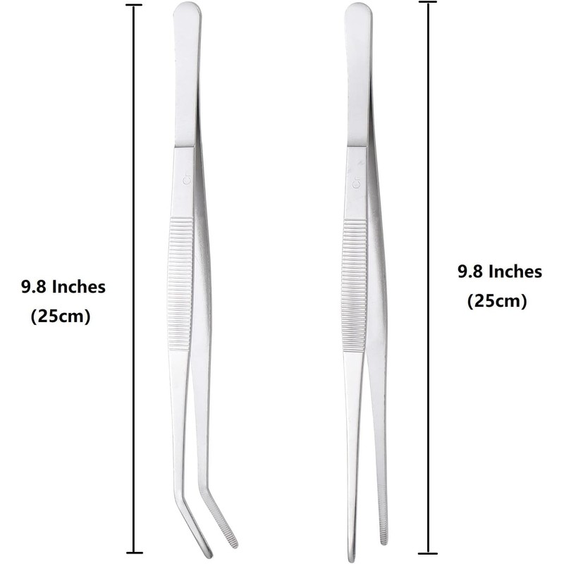 MIUPOO Stainless Steel Tweezers Long, Curved Tweezers, Long Straight Tweezers, Cooking Tweezers, Stainless Steel, Tweezers Set for Water Pets, Repairing, Craft, Electronics, Soldering, 2 Pieces, 25 cm