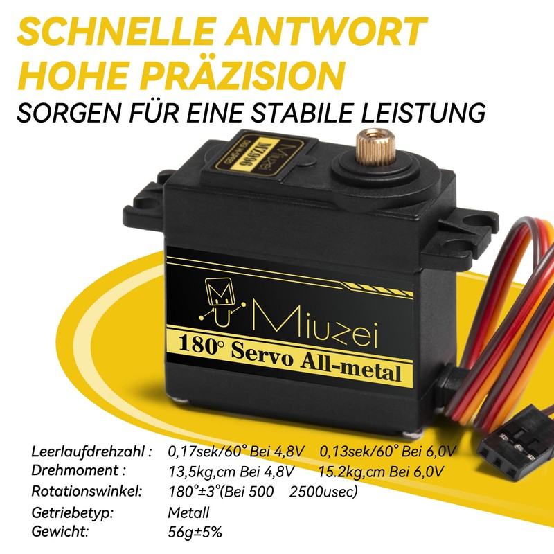 Miuzei Servo Motor 15 kg Digital Servo Motor Full Copper Metal Gear Servo for RC Car 1/10 1/8 Aircraft Boat Robot Helicopter for Arduino Model Making 180° Pack of 3