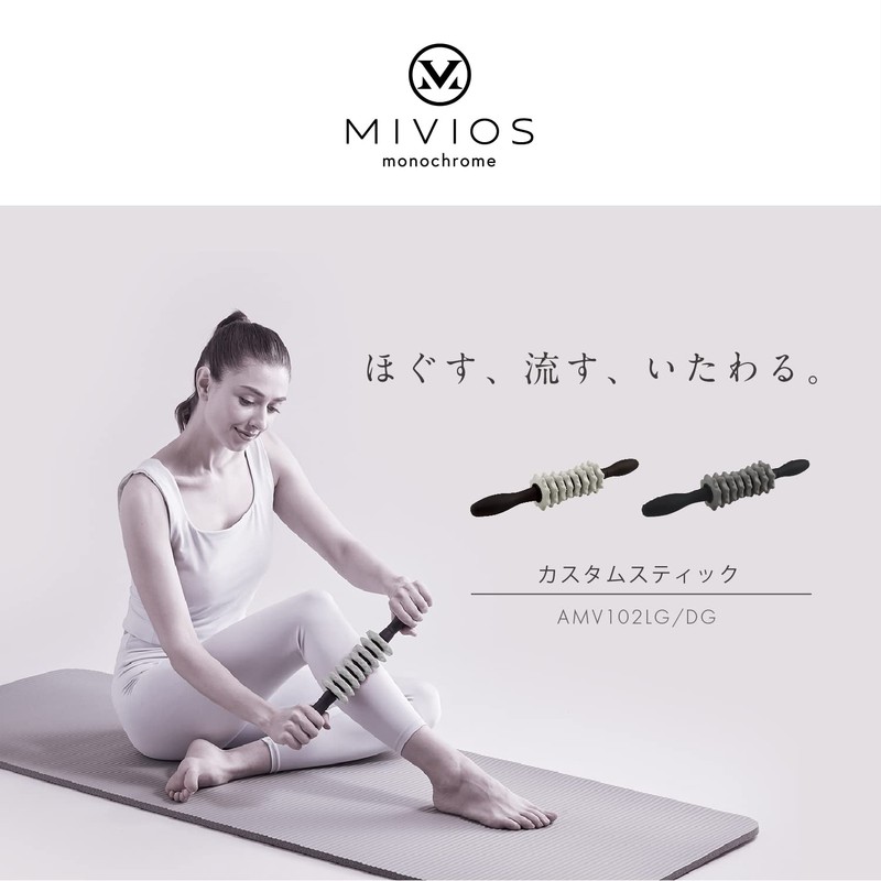 MIVIOS Stick Roller Custom Replaceable Press Point Fascial Roller Myofascial Release Stretch Custom Stick Mibios Mibios AMV102LG Light Gray