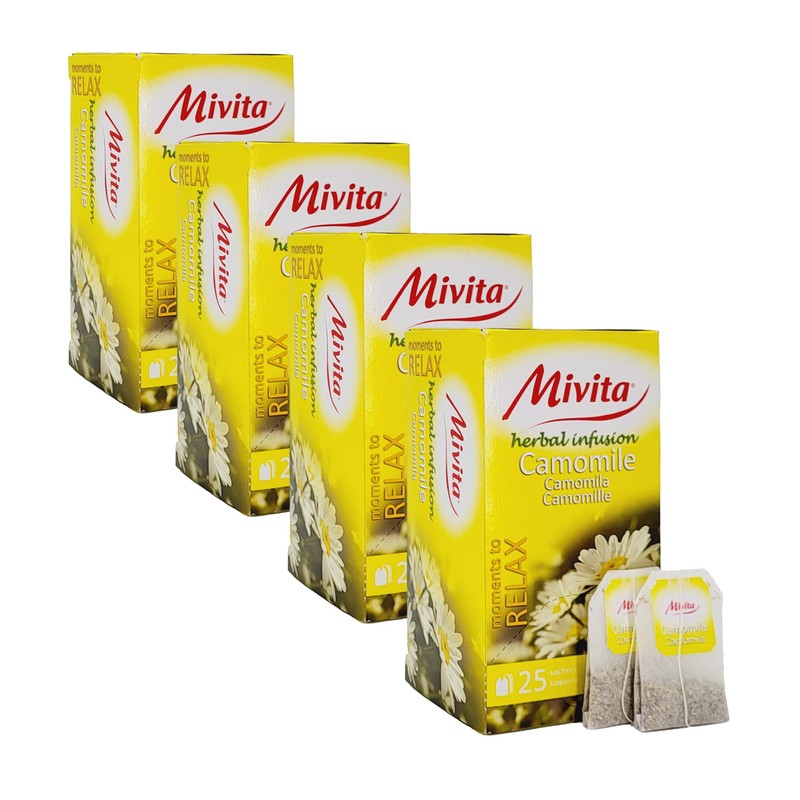 Mivita Camomile Infusion, pack of 4, total of 100 tea bags (25 each unit)