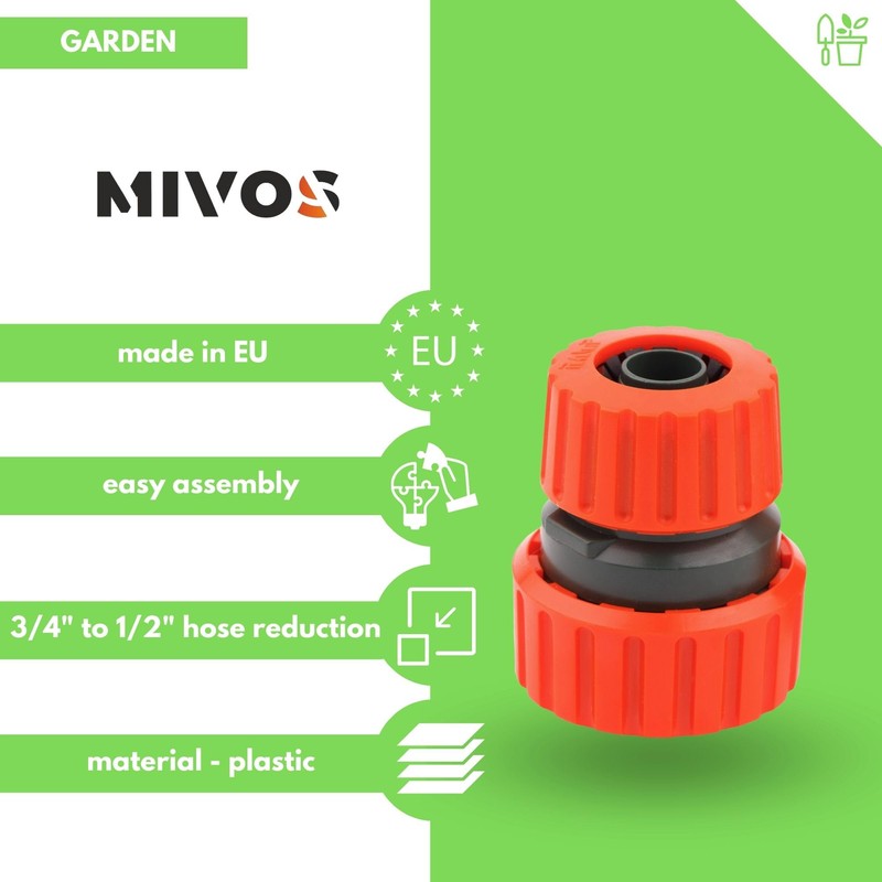 Mivos Hose Coupling 1/2 Inch to 3/4 Inch - Hose Reducer - Garden Hose Repair - Connector 1/2 Inch (13 mm) by 3/4 Inch (19 mm) - Made in the EU
