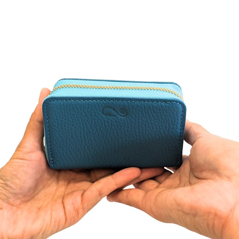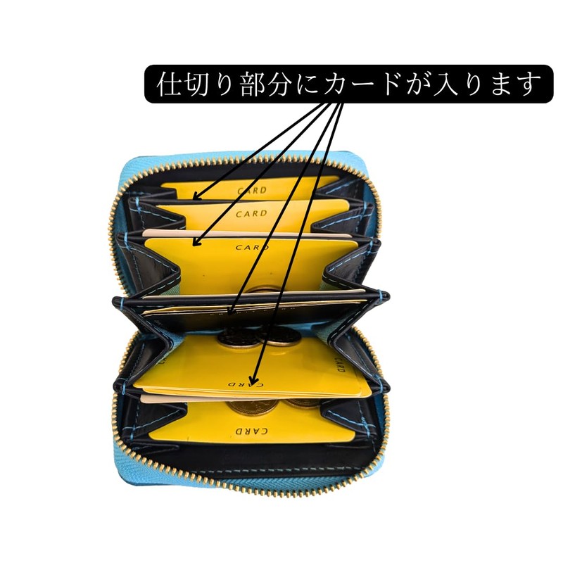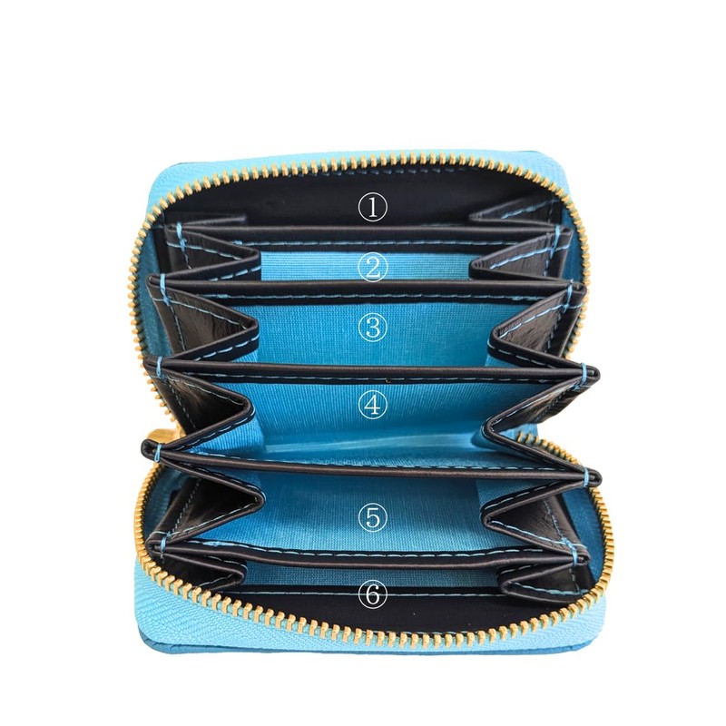 [MIVU] 6 Pockets that Can Separate All Coins, Round Zipper Coin Purse, Card Slot, Cowhide Leather, Shrink Leather, Turquoise