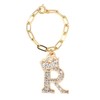 miwaki Bag Charm Initial Charm Keychain Initial Alphabet Crown Square Chain Women Accessories Gold charm01, Brass