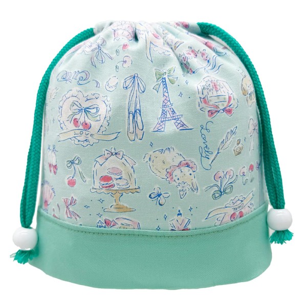miwaki Lunch Bag, Drawstring Bag, Small Girls, Cup Bag, Gusset, Elementary School, Kindergarten, Nursery, Made in Japan, Handmade, Simple, Name Tag, Gusset, Motif, Mint Green, Dog, Rabbit, Ribbon,
