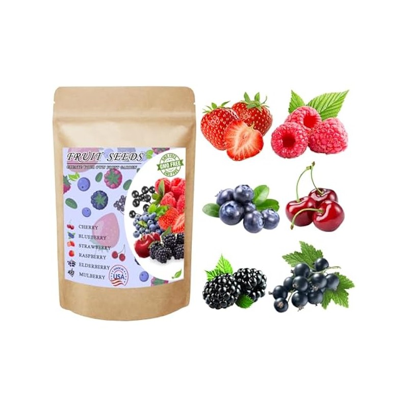 Mix Fruit Seeds 1100+ Berry Seeds for Planting Strawberry Raspberry Mulberry Blueberry Elderberry Cherry - 6 Varieties Individually Packaged Non-GMO for Home Garden