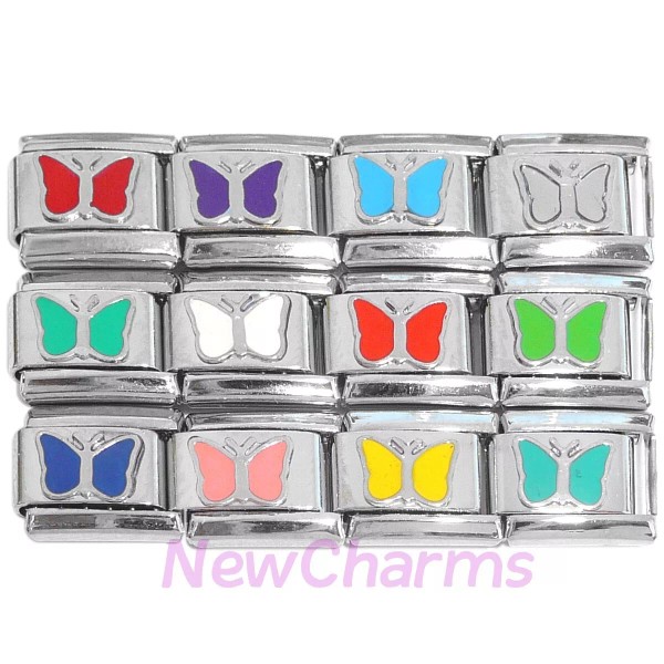 Mix Set of 12 Butterfly Colorful Italian Charms Birthstone Inspired Links MIX154