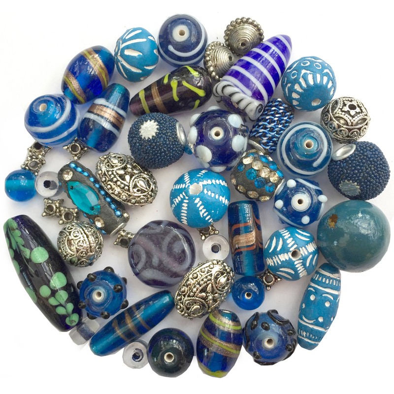 Mixed Pack of Handmade Blue Jewellery Making Beads