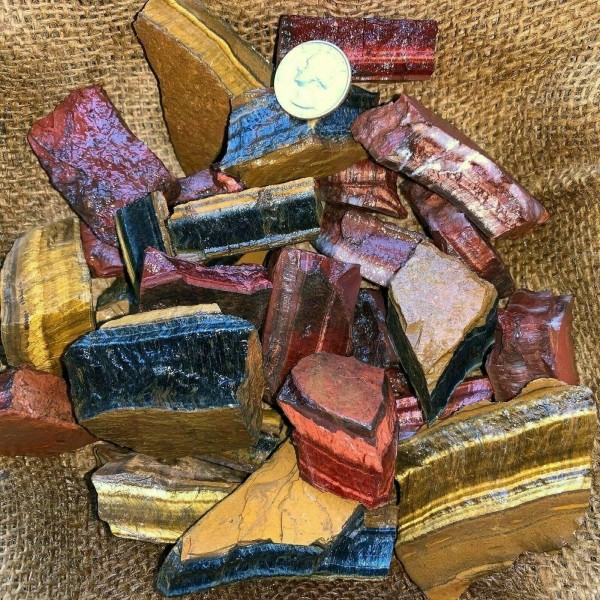 MIXED Tiger Eye Rough (RED, BLUE, GOLD)- 2000 Carat Lots+a FREE Faceted Gemstone