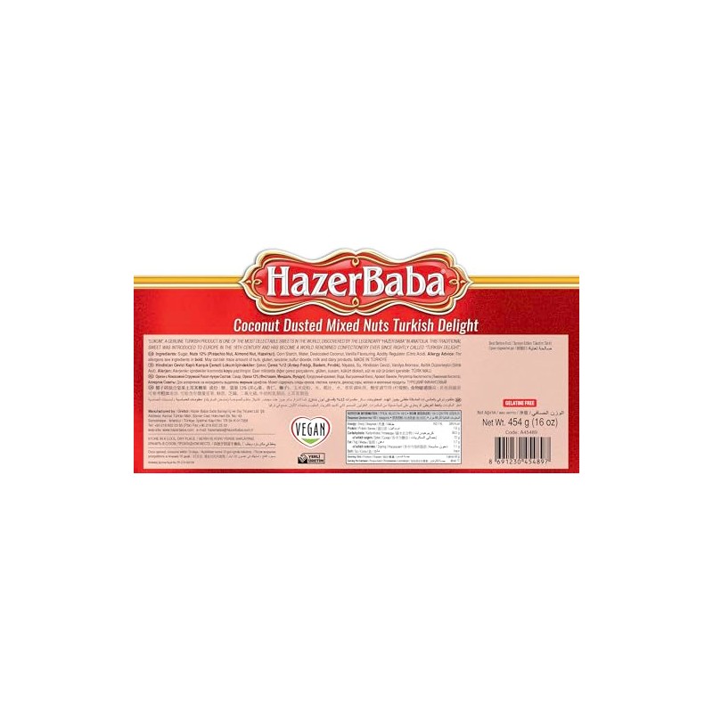 Hazer Baba Turkish Delight Candy, Gourmet Snacks Box Gift, Traditional, Pistachio, Almond, Hazelnut, Coconut Dusted, Vegan Candy Lokum, Premium Quality Snacks Gift Box, Kosher 16 Oz