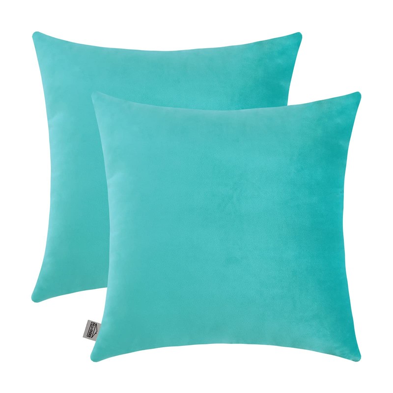 mixeoo Comfy Turquoise Throw Pillow Covers Decorative Square Solid Thick Velvet Super Soft Cushion Cases Home Decor for Sofa Couch Living Room Chair, Set of 2, 18 x 18 Inch