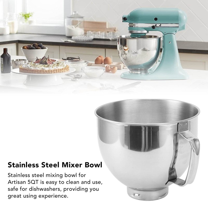 - VERSATILE COMPATIBILITY: This stainless steel mixer bowl ensures a seamless fit for your KitchenAid mixer with this stainless steel mixer bowl, designed for compatibility with both Classic 4.5Q and 5QT series. Upgrade your mixing experience with versatility.