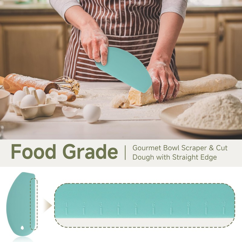 - 【Silicone Bowl Scraper】Made of food-grade silicone with a curved edge for scraping bowls, Straight edge for cutting dough. convenient and practical.