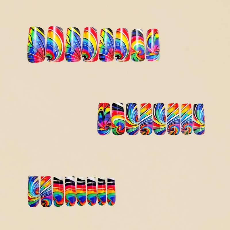 - High - Quality: Crafted from premium materials, these nails withstand daily wear. Highly resistant to chipping and breaking, they let you confidently flaunt your stunning colorful - artistic - themed nails on various occasions.