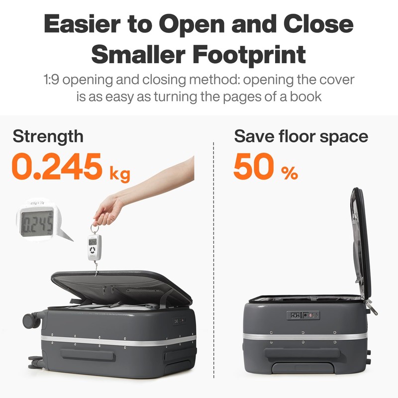- 【Innovative Side-Opening Design】The design is different from the traditional way of opening and closing the suitcase in half, which is Effortlessly open and close your suitcase like never before, ideal for business trips and long journeys