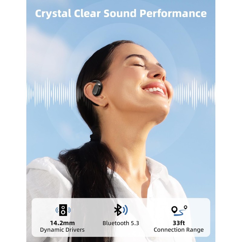 - Crystal-Clear Sound Quality – Equipped with 14.2mm dynamic drivers, Mixiba open ear headphones wireless bluetooth deliver crisp, clear audio for music, audiobooks, podcasts, and calls, offering an immersive listening experience.