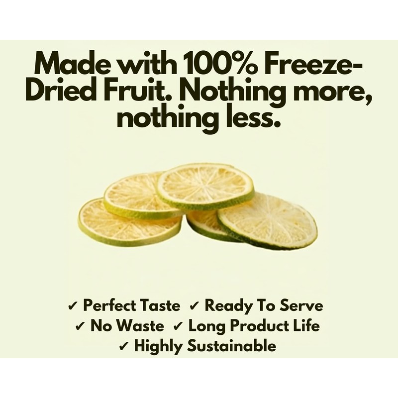 - 🍃 LONG-LASTING FRESHNESS – No more wasted fruit! Our freeze-drying process removes moisture while preserving flavour and nutrients, ensuring a long shelf life so you always have fresh lime slices at hand.