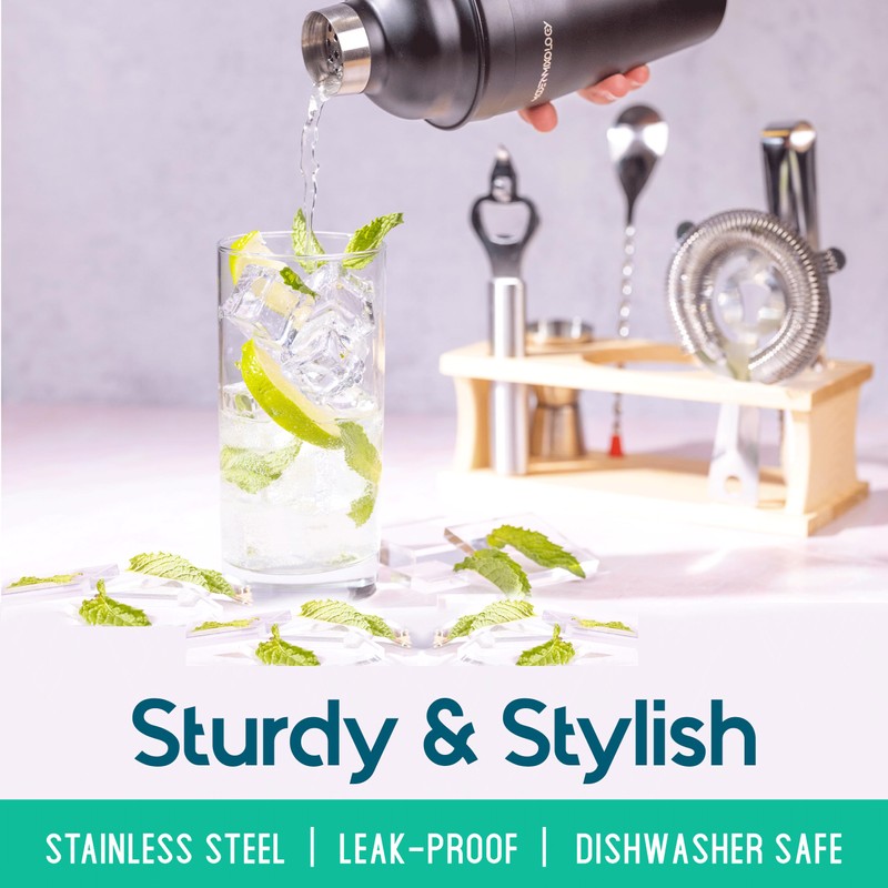 - High-Quality Materials: Made from durable stainless steel, this black matte cocktail shaker set is built to last and is dishwasher safe for easy cleaning.