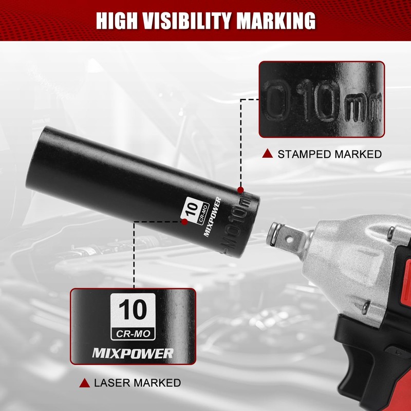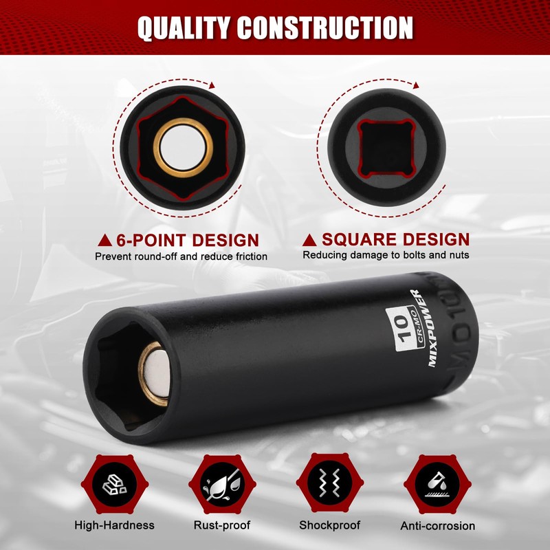MIXPOWER 1/4" Drive Deep Magnetic Impact Socket, 6 Point, 10mm, Metric, CR-MO