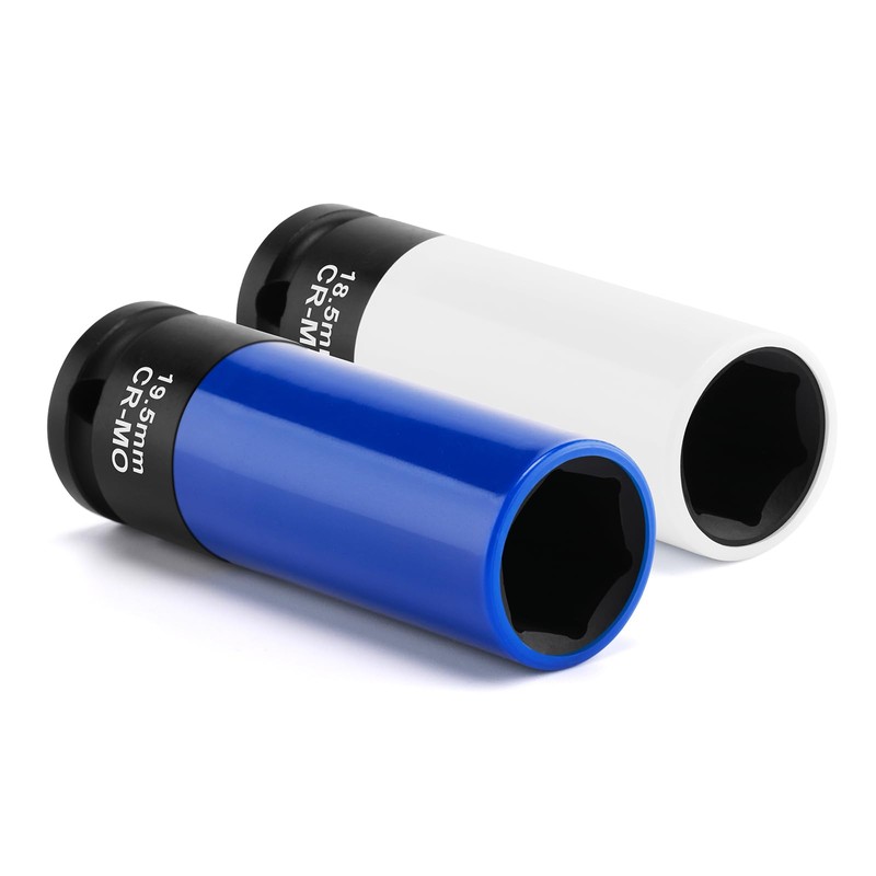 - Size: 1/2 inch drive wheel socket, 2 pieces 18.5 mm, 19.5 mm, length 85 mm. Ideal for Ford 19mm chrome covered nuts that have swollen.