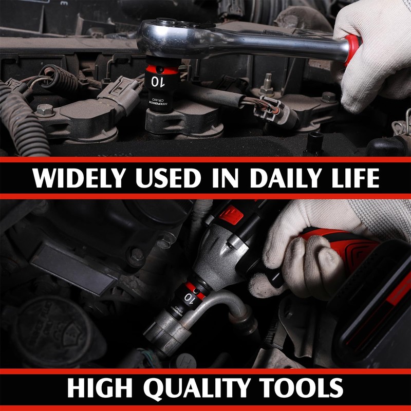 • 【Marking 】The stamped and ink filled size marking enables you to select the right socket every time throughout the life of the socket. Color coded ring makes it effortless to identify socket sizes.
