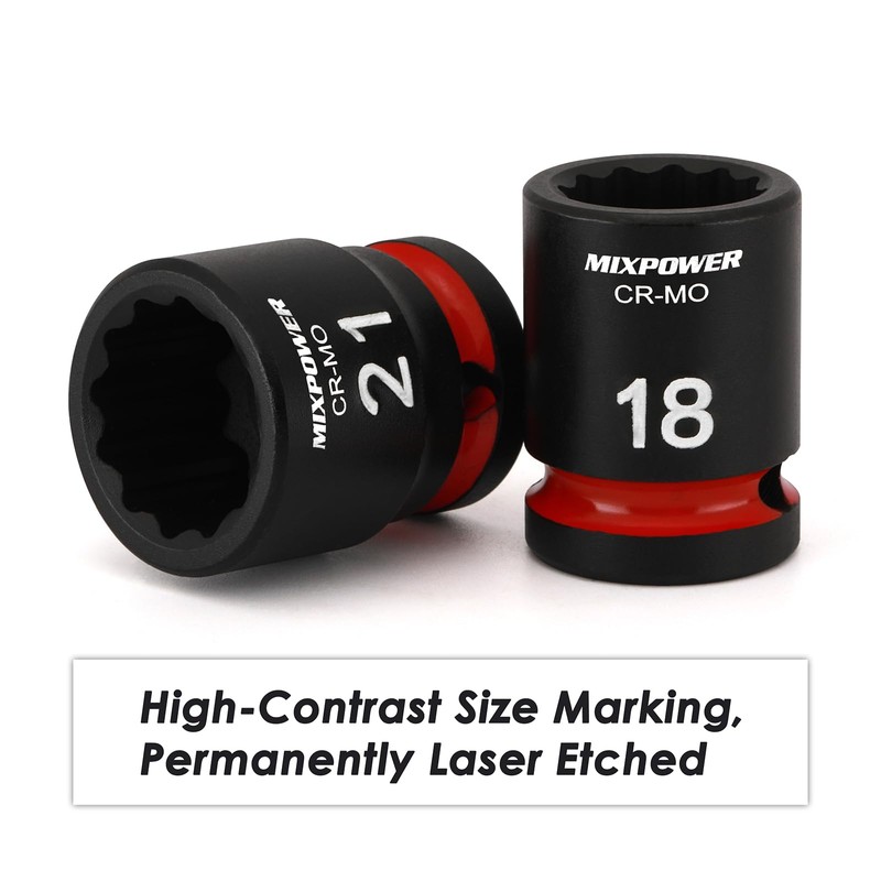 MIXPOWER 26 Pieces 1/2'' Drive Shallow Impact Socket Set,12 Point,Metric,10-3...