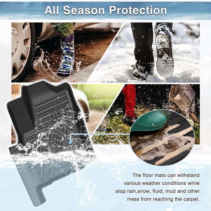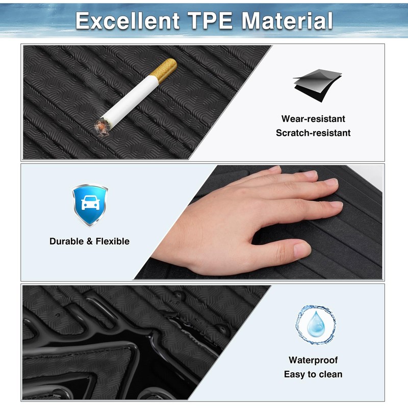 • All Weather and Safe TPE Material: Floor mats are made of TPE materials featuring waterproof, durable, wear-resistant, non-slip and odorless. High tensity and safe TPE material keeps its flexibility in all season while still offering an excellent feel and extreme wear resistance.