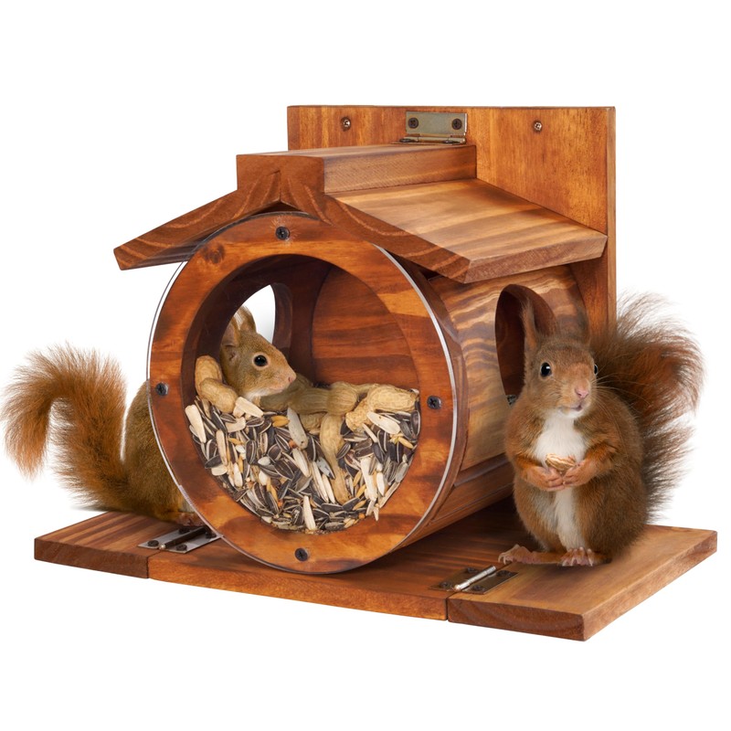MIXUMON Wood Squirrel Feeder, Squirrel Feeders for Outside Winter, Wooden Chipmunk Feeder for Corn, Peanuts, Durable Box Easy to Fill with The Roof Can Be Opened