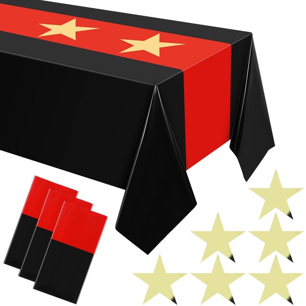 - Black and Red Table Cover: measuring about 54 x 108 inches/ 137 x 274 cm, the movie theme rectangular table cloths for parties disposable are large enough to fit most tables, and they are safe, reliable, lightweight, resistant to stains, water, wrinkles, smooth, bring you an enjoyable user experience