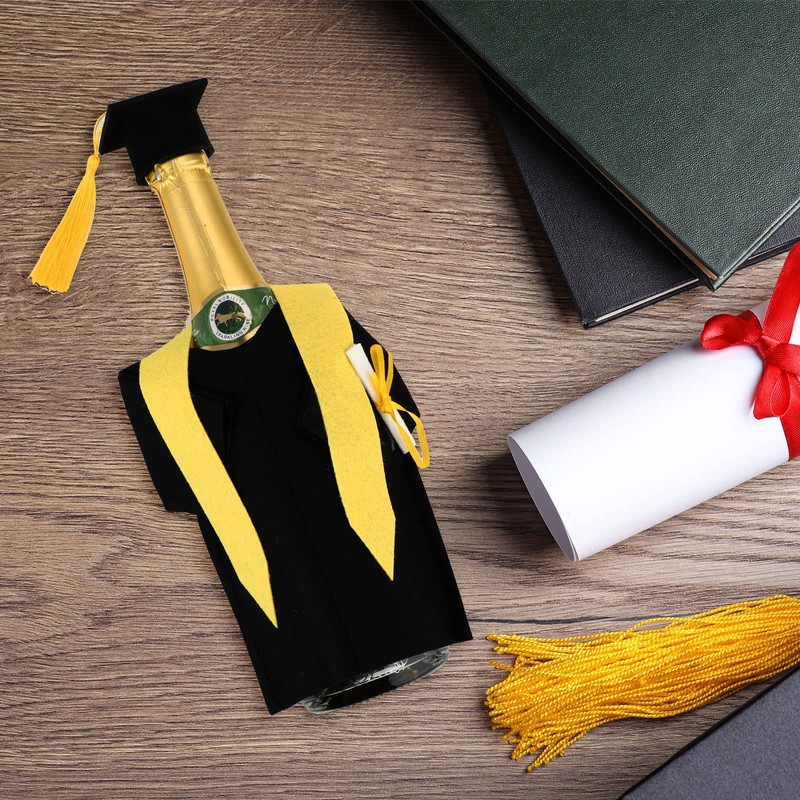 - Interesting Present: the set of the grad coat wine bottle cover looks compact but cute, can be applied as a graduation gift for men and women at graduation parties, which can leave them wonderful memories, and make them surprised