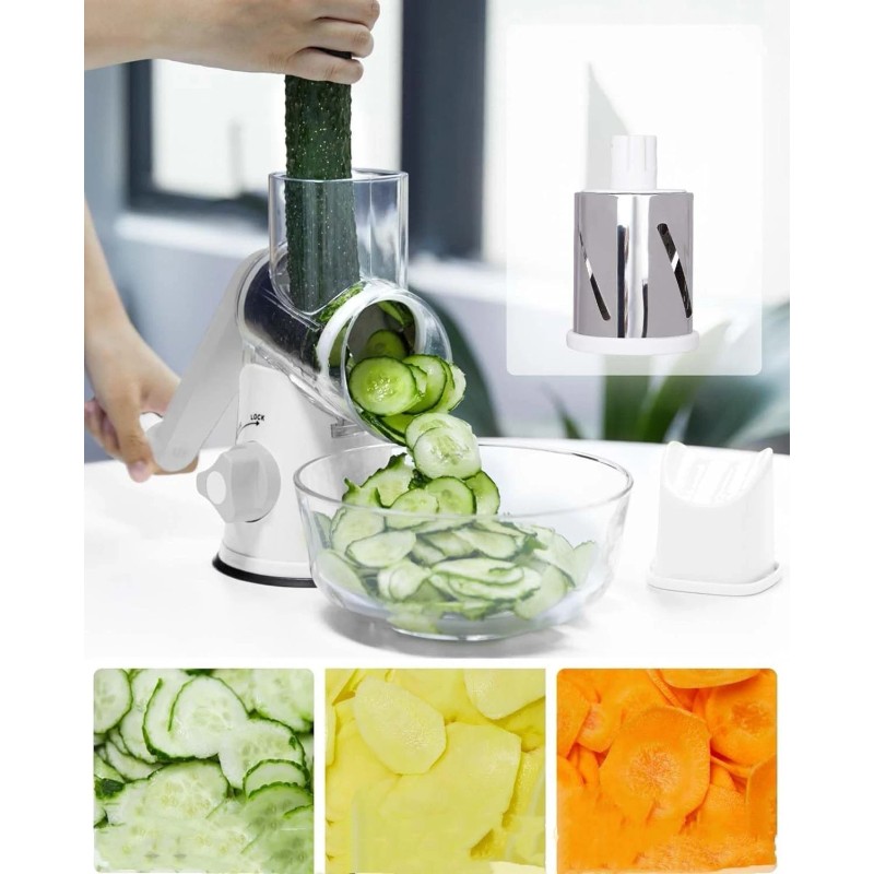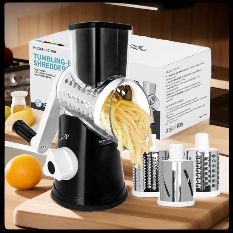 - More Than Just a Rotating Cheese Grater, But Also a Versatile Kitchen Tool - Still using a single function kitchen gadget? Why not choose our 3-in-1 multifunctional grater! The rotary drum grater comes with 3 different blades: 1 slicing blade, 1 coarse shredding blade, 1 fine shredding blade. By replacing the blade, you can slicing, shredding, grating, grinding. The roll grater will save you much kitchen space.