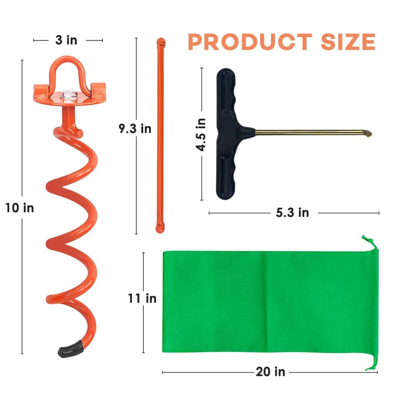 - MULTIPLE APPLICATIONS - You can easily use our yard anchor, it can be applied in many places, such as metal fences and wooden fences, dogs, sheds, car ports, gazebos, travel trailers, trampolines, cabins, garages, mobile homes, small buildings, playground sets, Children's swing, slide, deer stand, canopy, camping, etc