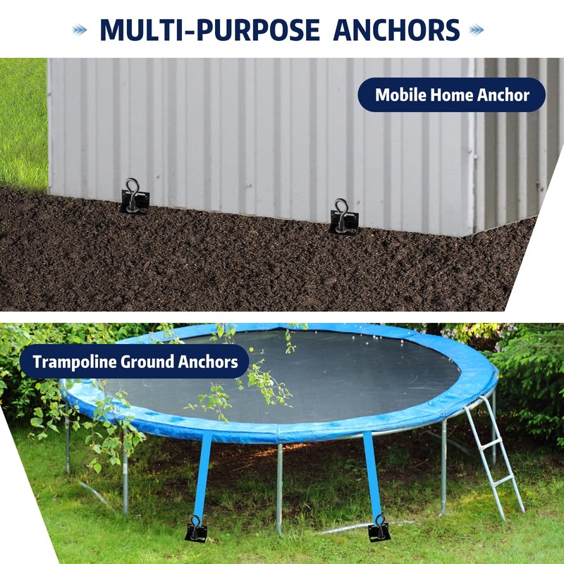 - MULTIPLE APPLICATIONS - You can easily use our yard anchor, it can be applied in many places, such as metal fences and wooden fences, dogs, sheds, car ports, gazebos, travel trailers, trampolines, cabins, garages, mobile homes, small buildings, playground sets, Children's swing, slide, deer stand, canopy, camping, etc.