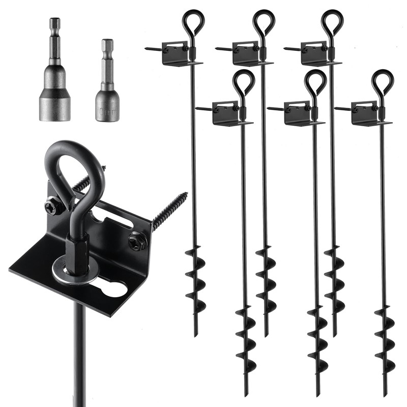 - EASY INSTALLATION AND USE - You only need to push the ground anchor head of the garden spiral stake into the ground, and you can directly rotate it by hand or electric drill until the spiral anchor is fully inserted into the ground. Outdoor spiral ground anchors are sturdy, very convenient to use, and very safe. This outdoor Spiral anchor is a good helper for your life.