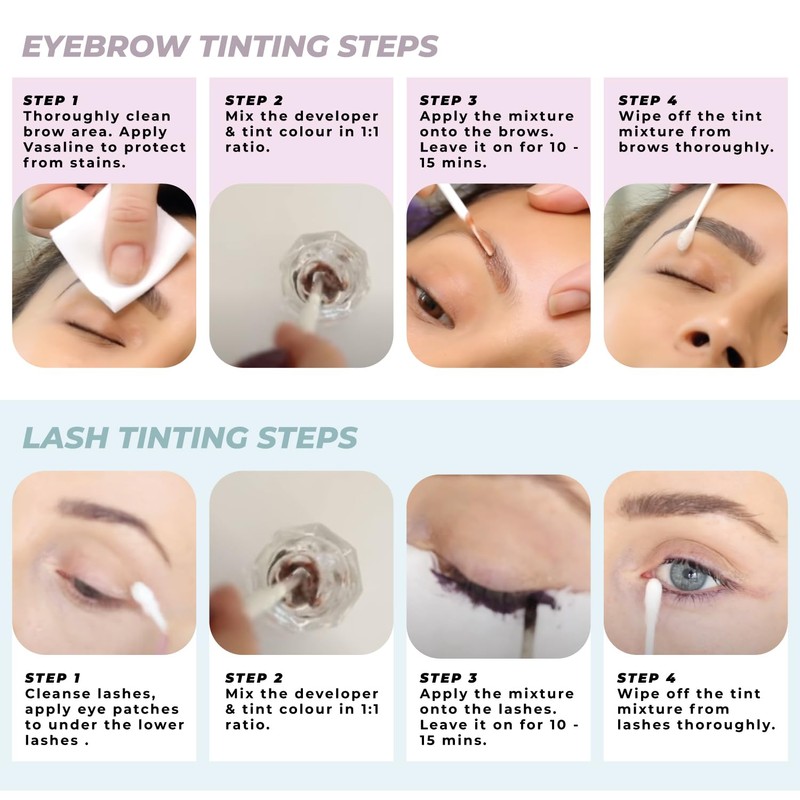 - 🫶 SUPER EASY, FAST APPLICATION: The application process with our Brow & Eyelash Tint Kit is a breeze! First clean the treatment area, then simply mix the Developer and Tint Colour in a 1:1 Ratio, apply to the desired areas, and wait for 10 to 15 mins then wipe off the mixture. Voila! You’ve got the beautifully tinted eyelashes and eyebrows that appear fuller and thicker naturally. This stunning dark and defined result will last up to 5 weeks!