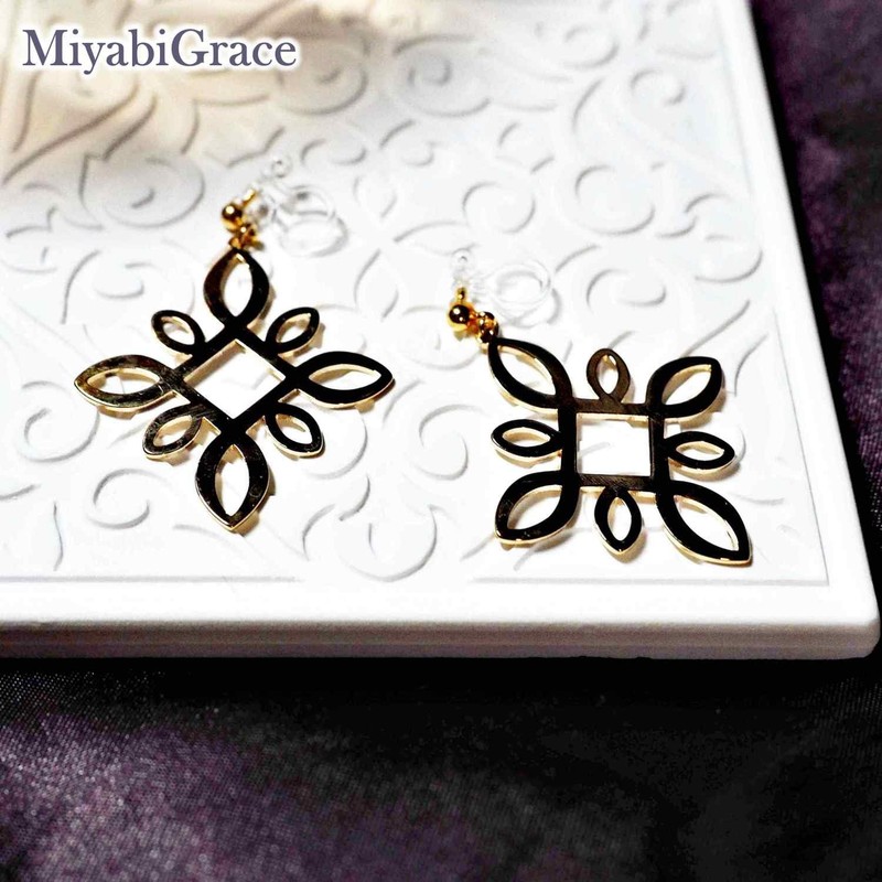 MiyabiGrace - arete de clip para mujer, diseño de filigrana de flores doradas, cómodos, no perforados, Resina, No es una piedra preciosa