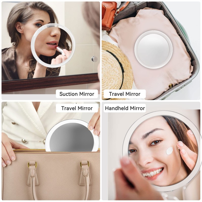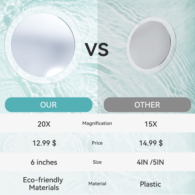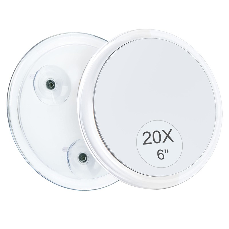- Espejo fácil de usar y portátil: el espejo ampliado de 20 veces tiene 3 ventosas, mide 6 pulgadas de largo y 6 pulgadas de ancho, y es simple y firme de instalar. Puedes ponerlo en tu bolsa de mano o funda de viaje, y es especialmente bueno como espejo de maquillaje de viaje.