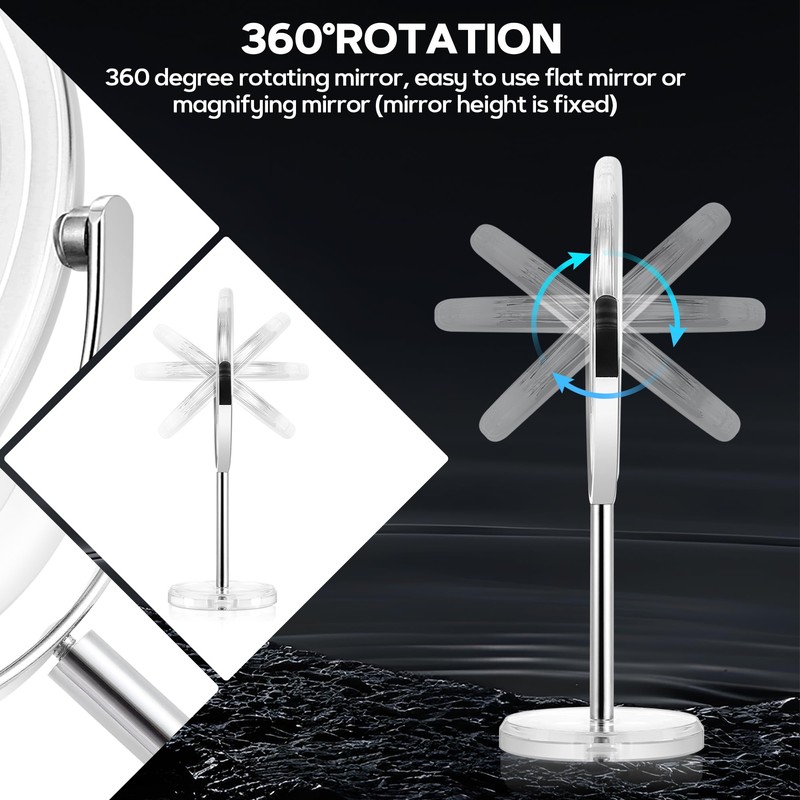- 360° Rotation: The 360° rotating mirror allows for easy switching between 1x and 30X magnification, ensuring a crystal-clear view from any angle. This double-sided amplified makeup mirror provides a sharp reflection no matter how you pivot it