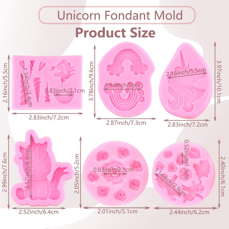 1 molde para fondant con flores de unicornio: 2.4 x 2.4 pulgadas.