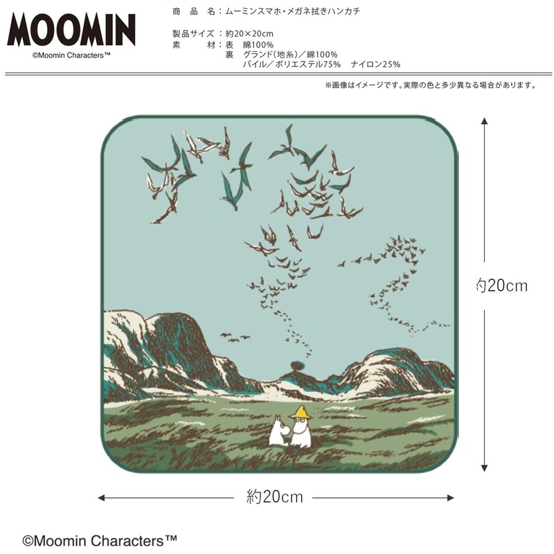 Miyamoto Towel 05869 Miyamoto Handkerchief, Moomin, Smartphone/Glasses Cleaning Handkerchief, Grassland, Blue, Approx. 7.9 x 7.9 inches (20 x 20 cm)