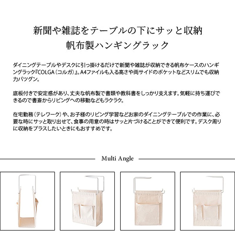 - Hanging canvas storage rack for newspapers and magazines just hanging on your dining table or desk