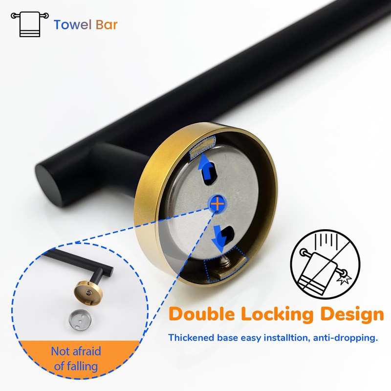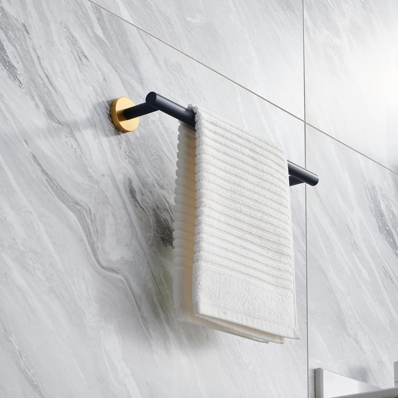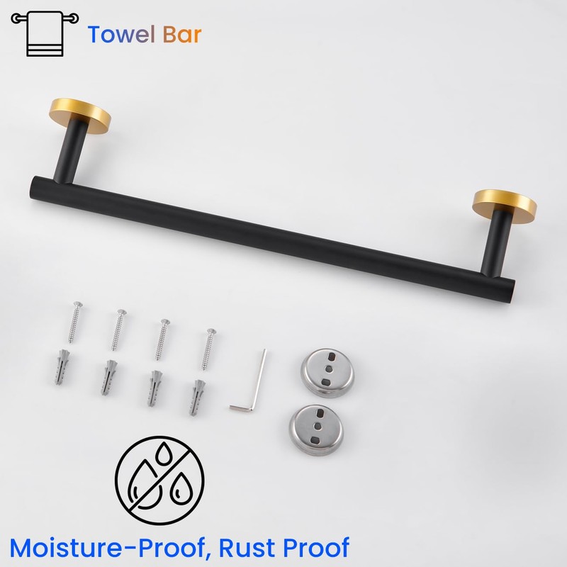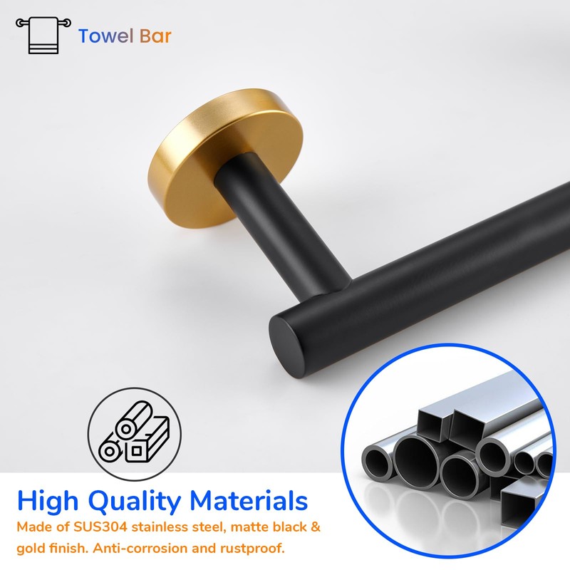 Miyili 15.75-Inch Bathroom Towel Bar, Stainless Steel Bath Shower Towel Rack, Towel Holder Wall Mounted Black & Gold, A01BG40A