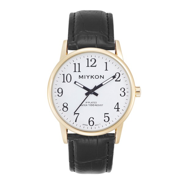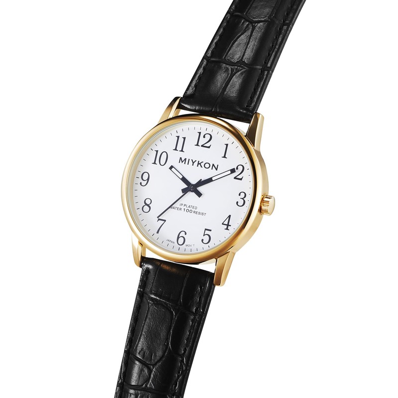 Miykon Casual Analog Watches for Men - Minimalist Easy Reader Mens Dress Watches with Genuine Leather Strap - Ion Polished, Scratch Resistant Glass, Japanese Quartz, Waterproof to 100ft, Gold Case