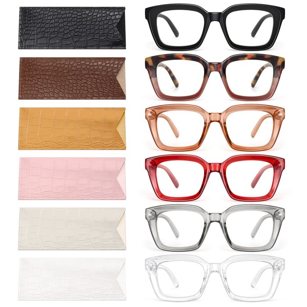 • Mixed 6-pack Readers: Contain six pairs of eyewear frames in black, transparency, blackpink, leopard print, tortoise shell, spotted, 6 soft cases, screen glasses cleaning cloth and blue light test kit