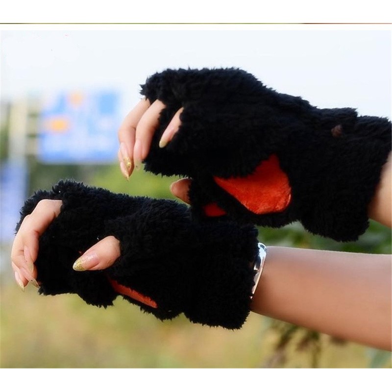 MizHome Cat Bear Plush Claw Paw Mitten Soft Winter Gloves Costume Black