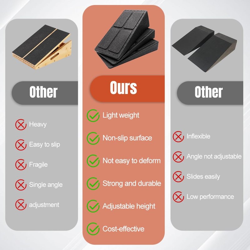 - 【Flexible Stretch Angle】: Calf Stretcher Set consists of 2 small wedges, each with 9° tilt and a wedge with 18° inclination. Up to 3 different tilt angles, the set can be used flexibly for any training level.