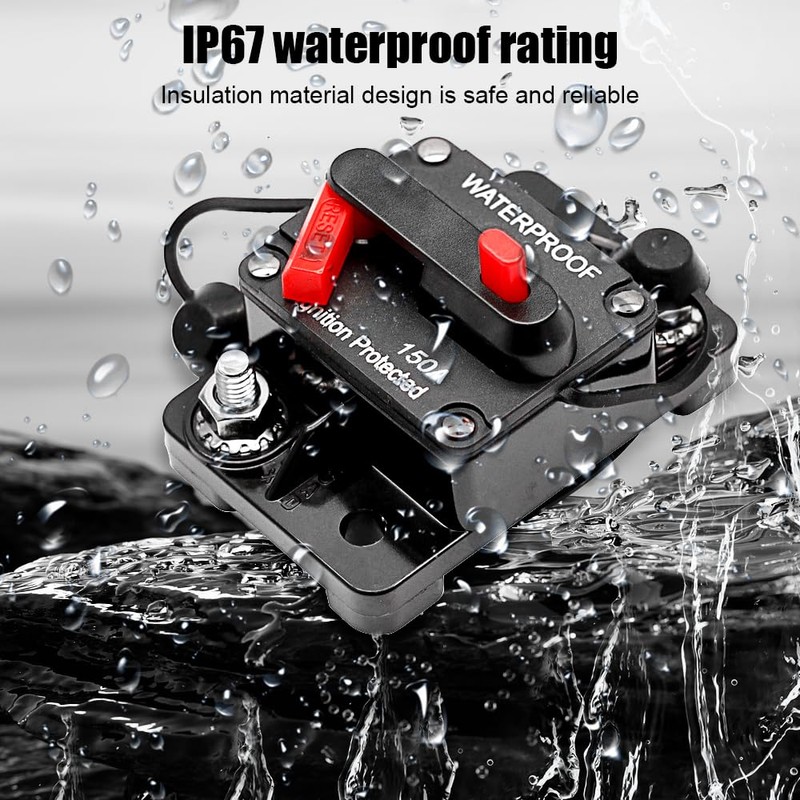 mizikuu Circuit Breaker 150 A, Waterproof Circuit Breaker with Manual Reset DC12-48 V Fuse Holder Reset Switch Car Fuse Circuit Breaker for Motor Car Marine Audio