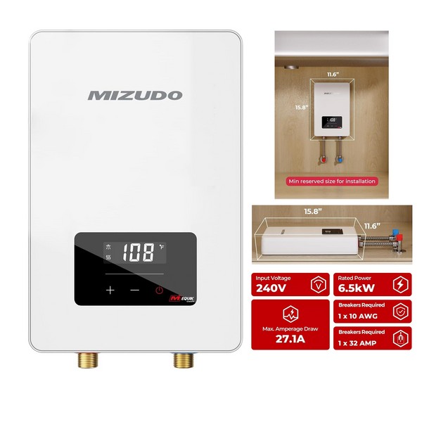 MIZUDO 6.5 kW 240V Small Instant Hot Water Heater Use for Under Sink LED Display