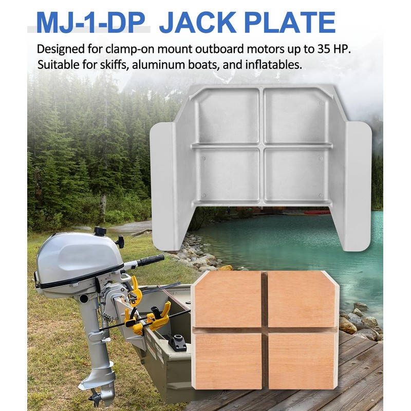 MJ-1-DP 4'' Setback Small Engine Jack Plates Replacement for Outboard Motors Up to 35HP - Manual Add Distance Between Engine and Transom - Marine Grade Mounting Block