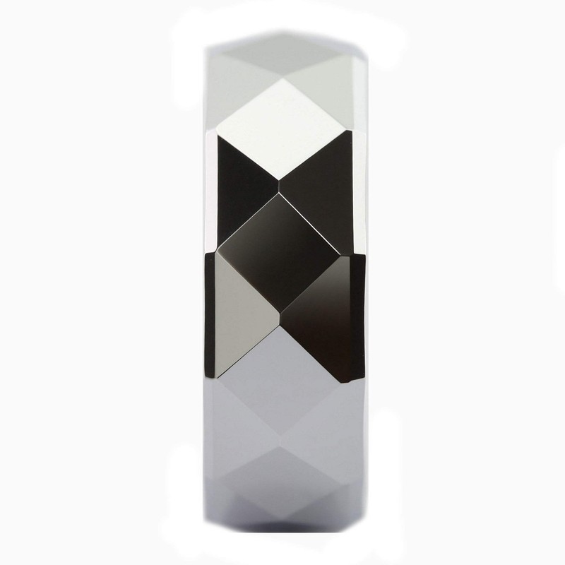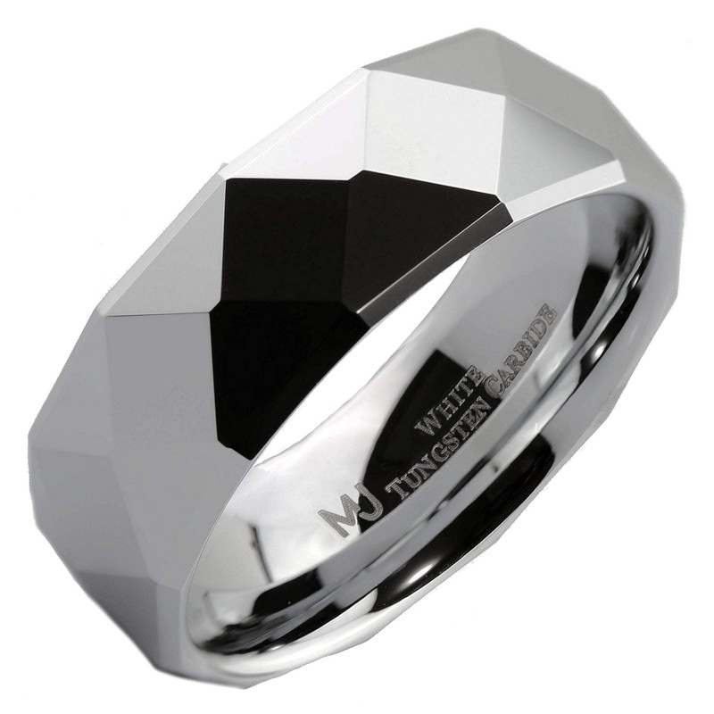 MJ Metals Jewelry White Tungsten Carbide COMFORT FIT Wedding Band Multi Faceted Mirror Polished 8mm Ring 9